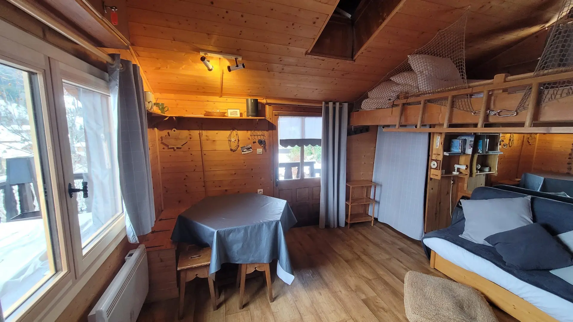 Une mezzanine pour recevoir les plus jeunes et un canapé convertible vous permettront de récupérer de vos longues journées, été comme Hhiver.