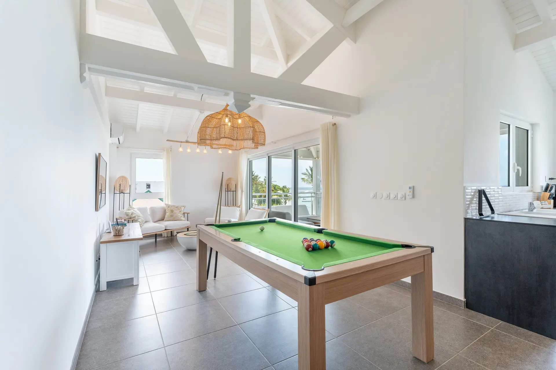 Only 4 View vous propose un appartement luxueux avec vue panoramique sur la plage de Sainte Anne en Guadeloupe, classé 5 étoiles. Cet appartement peut accueillir jusqu’à 5 personnes et comprend deux chambres avec salles de bain. Vous pourrez également profiter d’un solarium (Rooftop), billard et d’un spa pour 3 personnes pour vous détendre après une journée passée à explorer les environs. Avec son emplacement en bord de plage, cet appartement vous offre un accès direct aux eaux turquoises de la mer des Caraïbes. Vous aurez accès à pied à tous les commerces et restaurants du bourg de Sainte-Anne à pied.